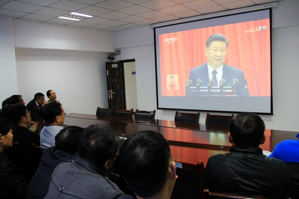 收看過程中,黨員干部認(rèn)真聽取報(bào)告內(nèi)容,并隨著習(xí)近平總書記的報(bào)告進(jìn)程不時(shí)發(fā)出陣陣掌聲。