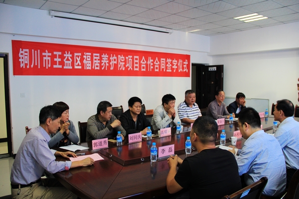 9月29日下午,銅川市王益區(qū)福居養(yǎng)護院項目合作合同簽約儀式在王家河社區(qū)隆重舉行。銅川礦務(wù)局實業(yè)公司、王益區(qū)民政局及王家河社區(qū)領(lǐng)導(dǎo)出席簽約儀式。