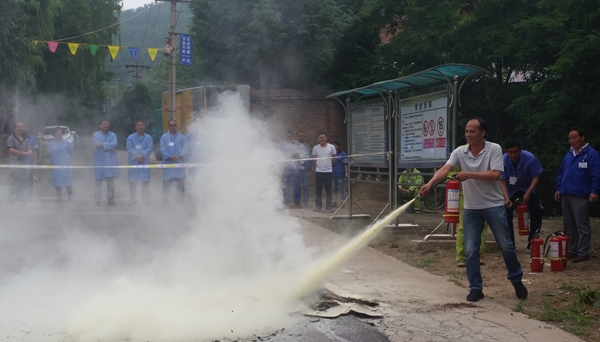 為了讓員工熟悉手提式滅火器使用方法,該公司還針對(duì)各單位配備的干粉式、二氧化碳式等不同類(lèi)型滅火器,請(qǐng)專(zhuān)業(yè)人員對(duì)其正確使用方法及適用范圍進(jìn)行了耐心細(xì)致的講解,并讓每位員工現(xiàn)場(chǎng)進(jìn)行了演練。