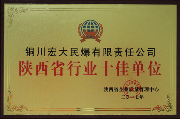 近日,從陜西省企業(yè)質量管理中心傳來喜訊,銅川宏大民爆有限責任公司被授予 “陜西省行業(yè)十佳單位”榮譽稱號。據(jù)悉,這是該公司成立以來,獲評“陜西省AAA級信譽單位”之后又一次獲得的殊榮。
