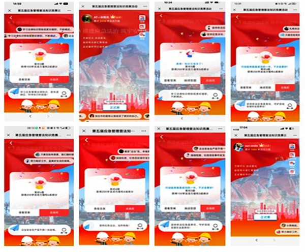 該中心及時組織實施,動員職工積極參與,此次應急普法知識競賽活動,以《憲法》《民法典》《突發(fā)事件應對法》《生產安全事故應急條例》《生產安全事故報告和調查處理條例》《安全生產許可證條例》等法律法規(guī)和重要指示批示精神為主要內容,通過線上答題的方式進行學習競答,每日可參與答題活動3次,每次5道競答題目。
