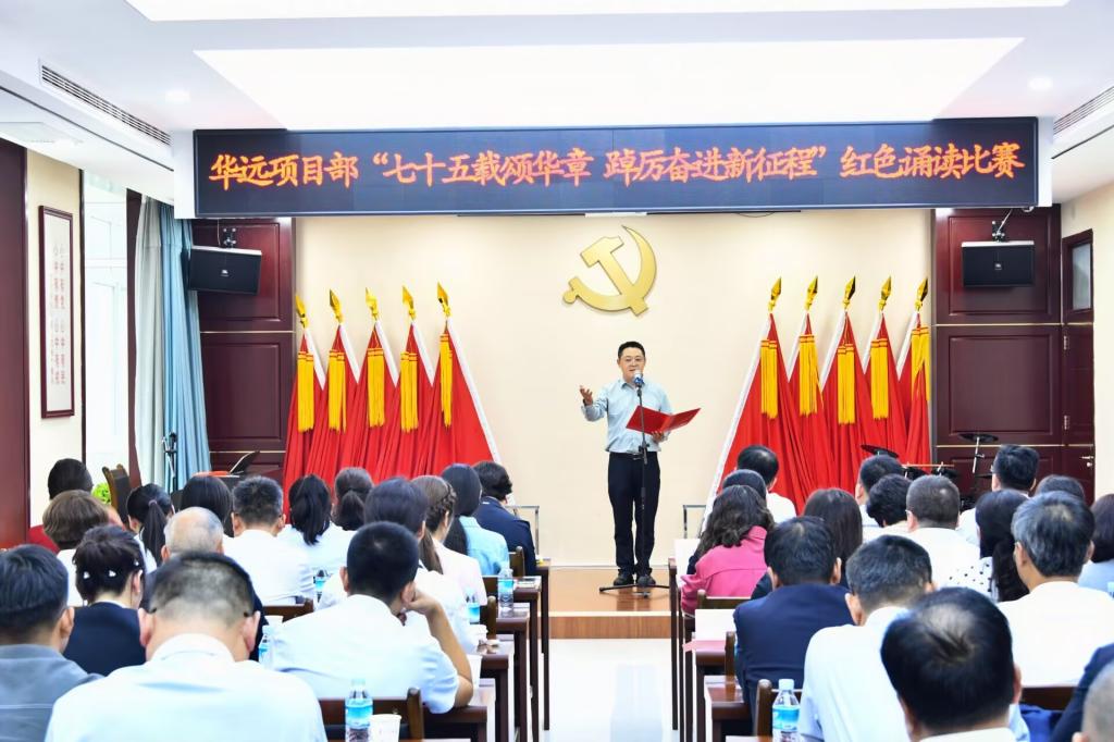 金秋桂月映旗紅,同心同向啟新程。為慶祝中華人民共和國(guó)成立75周年,9月29日,華遠(yuǎn)項(xiàng)目部組織舉辦了“七十五載頌華章 踔厲奮進(jìn)新征程”紅色經(jīng)典誦讀比賽,用誦讀和歌聲表達(dá)對(duì)祖國(guó)繁榮昌盛內(nèi)心的喜悅和祝福,進(jìn)一步激發(fā)廣大干部職工的愛(ài)黨愛(ài)國(guó)愛(ài)企熱情,以實(shí)際行動(dòng)向新中國(guó)成立75周年獻(xiàn)禮。