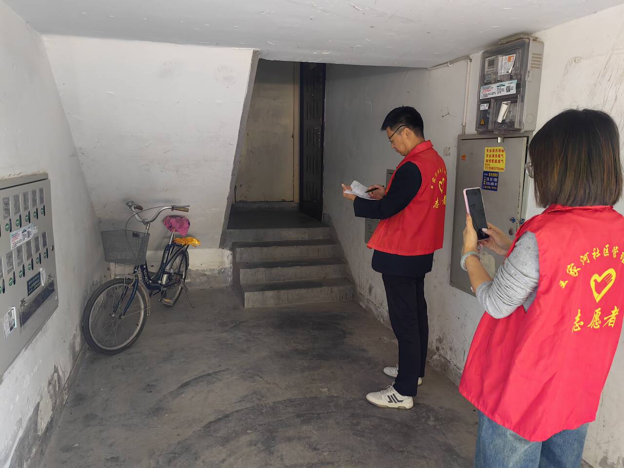 檢查中,該中心按照管轄區(qū)域?qū)⒕C合部、財務(wù)部、人力部、運行部人員劃分為5個小組,組員身穿志愿服務(wù)紅馬甲逐棟樓宇、逐個單元樓層對共用設(shè)施設(shè)備、消防器材、環(huán)境衛(wèi)生、亂堆亂放雜物、車輛隨意停放堵塞消防通道、垃圾隨意投放等現(xiàn)象進(jìn)行徹底檢查,本著“現(xiàn)場發(fā)現(xiàn)問題、現(xiàn)場記錄、減少服務(wù)短板”的原則,不放過任何細(xì)節(jié)問題,逐一拍照并記錄在冊。