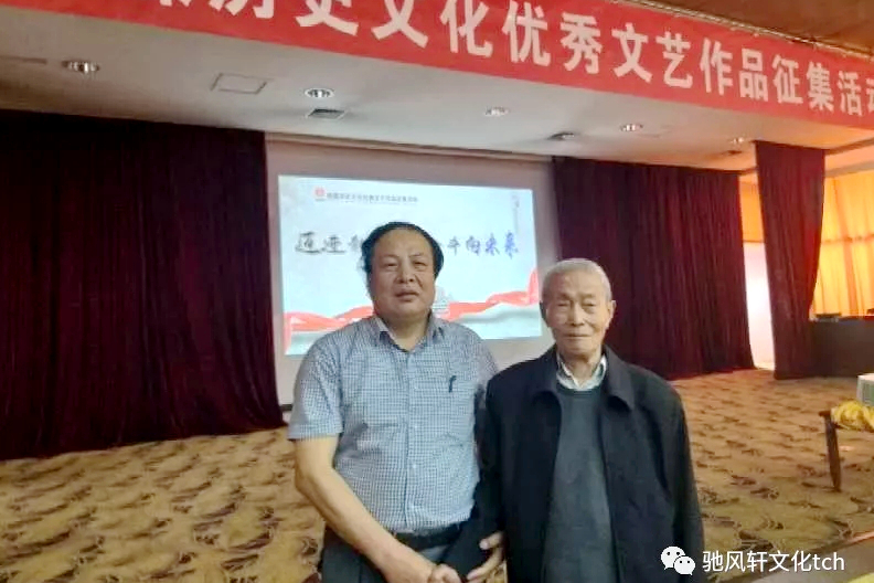 一進(jìn)會場,我就看見了精神矍鑠、氣色很好的姚筱舟老師,我急忙上前去問好。姚老師是精典紅歌《唱支山歌給黨聽》的詞作者,在銅川時,我曾寫過介紹姚老師的文章《永唱山歌給黨聽》,今日與姚老師在會上相逢,欣喜之情難以言表。姚老師和我握著手,笑呵呵地說,時間過得真快哪,幾十年了,騰馳也不是當(dāng)年的那個小伙子了。我說起和姚老師一起在《銅川礦工報》工作時向他學(xué)習(xí)請教的事兒,姚老師幽默地開起玩笑,沒有,沒有啊,我咋想不起來你向我學(xué)習(xí),向我請教啥了?我被逗笑,周圍一大圈的人也被逗笑。