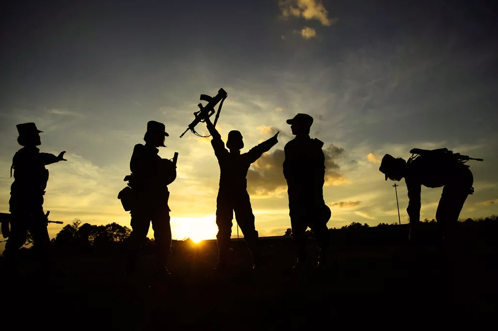 二哥當(dāng)兵時(shí)我實(shí)在太小,只能從照片和他的只言片語中領(lǐng)略軍人的風(fēng)采、感知軍人的情懷。黑白照片上,一身綠、三片紅,一顆五星頭上戴、革命紅旗掛兩邊,衣領(lǐng)上的風(fēng)紀(jì)扣扣得嚴(yán)嚴(yán)實(shí)實(shí),哥哥目光堅(jiān)毅銳利、單膝跪地,像是在裝填炮彈。炮口仿佛能穿越時(shí)空,發(fā)出耀眼的光芒,傳來震徹寰宇的聲響。退伍后當(dāng)回農(nóng)民的二哥,一直保持著軍人的作風(fēng),用他的話說叫“退伍不褪色”。穿過軍服當(dāng)過兵——這是二哥一輩子的榮耀,也是我對(duì)那一抹綠色最初的向往。
