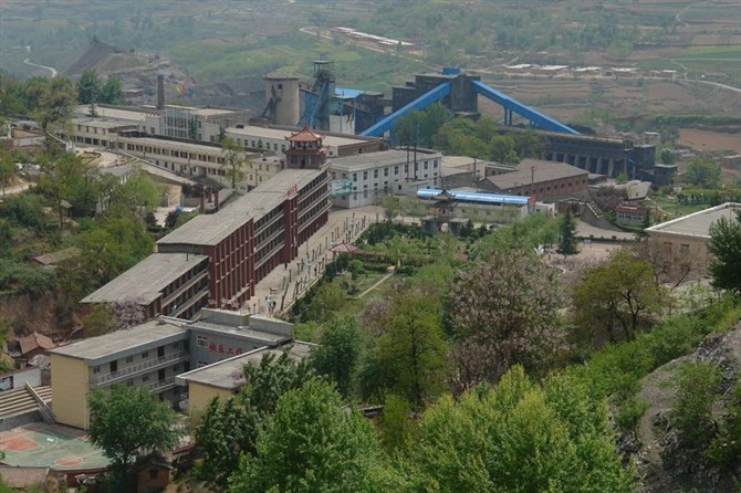 從“山上”俯瞰王石凹“山下”,可以看到“大樓”、選煤樓。那個黑色選煤樓前面的紅磚房子就是機電區(qū)翻砂組舊址上建設的,那里原先有平房,有院落,有我們的房子——木模倉庫,有我們父子開墾的“梯田”……現(xiàn)在痕跡全無 (攝影:韋夢龍)