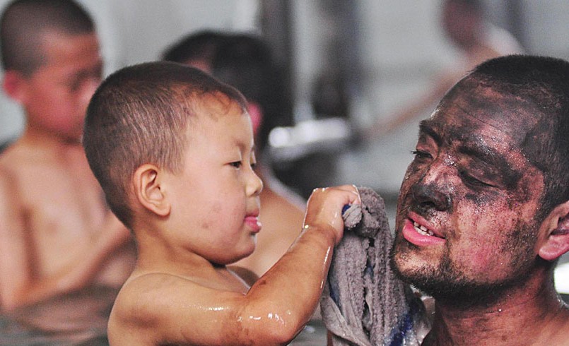 我曾經(jīng)問過父親,下井是做什么呢?父親說,去挖煤。可他后來又想了想,用輕松的語氣說,地下有許多的寶藏,等著我們?nèi)ラ_采。也許正是這樣的一個有些抒情的回答,讓我曾天真地以為,父親的工作就像尋寶一樣輕松。直到有一天,我在醫(yī)院門口玩耍,突然來了許多的人,緊接著便是救護車、擔架什么的,現(xiàn)場一片混亂。我在人群中隱約地看到一位像父親一樣穿著黑色工作服,帶著鋼盔帽的人,鮮血滴在通往醫(yī)院的路上,其間還伴著散落的煤灰。我瘋了似地跑回家,當我推開門看到父親的那一刻,居然撲在他懷里哭了。那一年,我5歲。