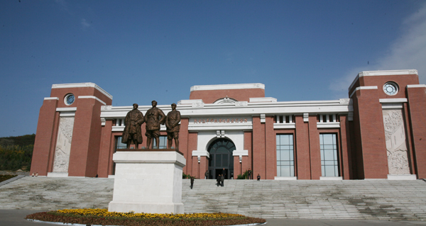 離照金村越來越近,一排排為村民們新建的紅色樓房盡收眼底,周圍環(huán)境優(yōu)美,空氣清新,仿佛置身度假山莊。汽車一轉彎,我們到達了照金紅色革命根據地展覽館。放眼望去,對面的山坡上高高的矗立著白色的人民英雄紀念碑,頂部正中鑲嵌著大大的一顆紅五星,寬闊的廣場上有許多身穿藍色的紅軍軍裝,頭戴紅五星軍帽的紅軍戰(zhàn)士正在敲鑼打鼓變換隊型,一問才知道原來是照金村民正在舉辦首屆運動會開幕式。