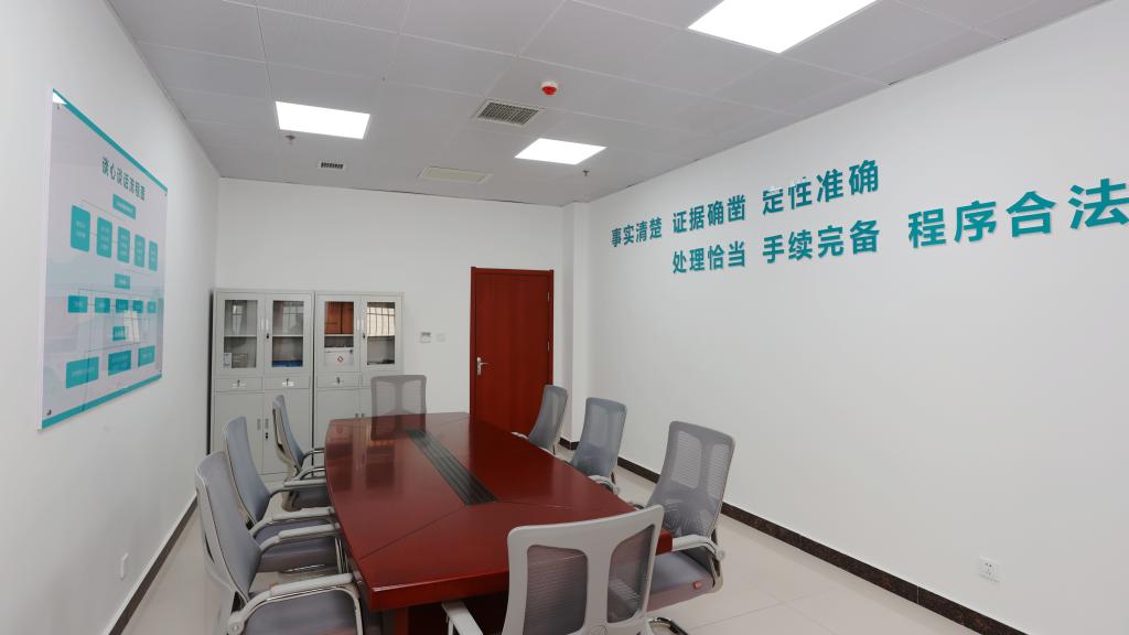 為深入貫徹全面從嚴(yán)治黨要求,進一步加強黨風(fēng)廉政建設(shè),近日,公司“同志式”談話室試運行。作為公司反腐倡廉教育陣地“一室、一館、一苑”(“同志式”談話室、反腐倡廉教育館、清正苑)之一,設(shè)置“同志式”談話室,是公司紀(jì)委落實中省紀(jì)委安全辦案要求的重要舉措,也是推進“紀(jì)檢監(jiān)察工作規(guī)范化法治化正規(guī)化建設(shè)年”的具體實踐。室內(nèi)醒目位置張貼問題線索處置、監(jiān)督檢查與談心談話流程,清晰展示監(jiān)督執(zhí)紀(jì)“四種形態(tài)”、辦案人員安全職責(zé)、安全員職責(zé)、“走讀式”談話交接程序及公司“六個嚴(yán)禁”等制度規(guī)定,兼具警示性與嚴(yán)肅性,辦公桌椅、電腦等設(shè)施配備齊全,整體布局簡潔莊重,既營造了嚴(yán)肅規(guī)范的談話氛圍,又傳遞出組織關(guān)懷的溫度。
