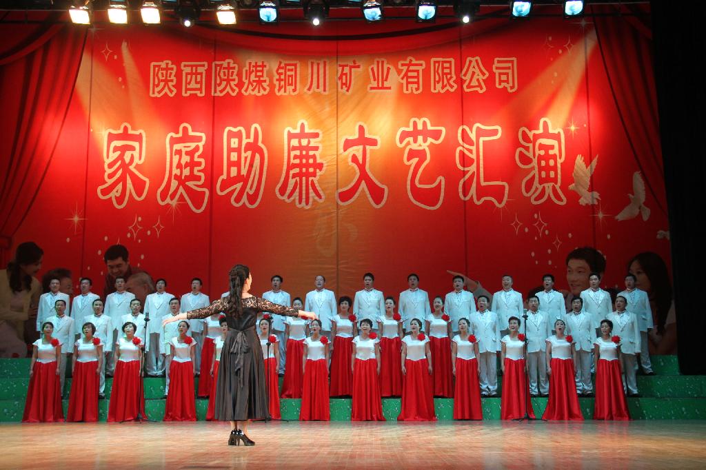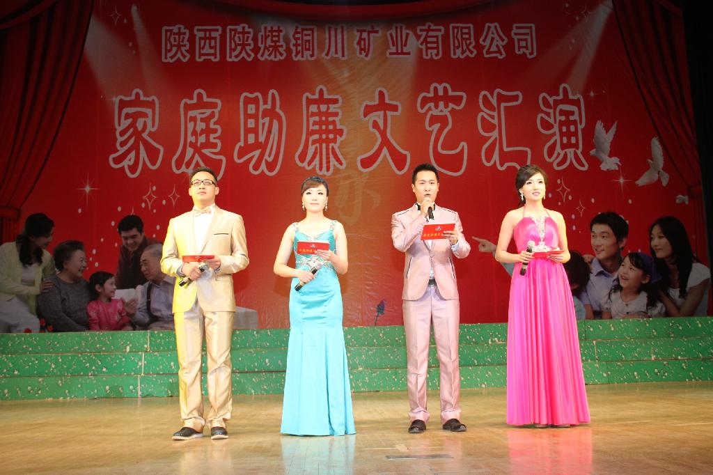 公司黨委副書記、紀(jì)委書記徐捷在演出開始前致辭。他指出,舉辦家庭助廉文藝匯演,既是全面貫徹落實(shí)黨的十八屆四中全會(huì)和中紀(jì)委四次全會(huì)精神的具體舉措,也是公司開展反腐倡廉系列教育活動(dòng)中的又一項(xiàng)重要內(nèi)容。目的就是為了進(jìn)一步增強(qiáng)預(yù)防職務(wù)犯罪工作的針對(duì)性和實(shí)效性,充分發(fā)揮家庭在黨風(fēng)廉政建設(shè)中的特殊作用,展示銅煤人的精神風(fēng)貌,動(dòng)員家屬把好家庭“廉潔關(guān)”、筑牢防腐“免疫盾”、當(dāng)好配偶“廉內(nèi)助”, 時(shí)刻提醒領(lǐng)導(dǎo)干部算好人生“七筆賬”, 自覺提高拒腐防變和抵御各種風(fēng)險(xiǎn)的能力,為公司在困境中砥礪奮進(jìn),貢獻(xiàn)出自己的智慧和力量。他希望,通過文藝匯演,使黨員干部和家屬能夠從中得到警示和啟迪,使每個(gè)家庭成員自覺當(dāng)好反腐倡廉的宣傳員、守門員和監(jiān)督員,在全公司營造“知榮明恥,勤廉立家”的良好氛圍,讓家庭成為黨員干部廉潔從業(yè)的溫馨港灣。他要求,公司黨員干部要努力踐行黨的十八屆四中全會(huì)提出的“依法治國,依規(guī)治黨”的要求,團(tuán)結(jié)一心、腳踏實(shí)地、銳意進(jìn)取,為陜煤化集團(tuán)扭虧增盈、深化改革順利進(jìn)行,為公司加快轉(zhuǎn)型、協(xié)調(diào)發(fā)展、和諧發(fā)展,建設(shè)富裕文明和諧美麗礦區(qū)作出新的、更大的貢獻(xiàn)。