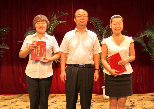 公司黨委書(shū)記黃河同志給榮獲一等獎(jiǎng)的選手頒獎(jiǎng)并合影留念