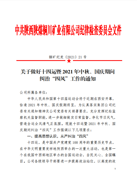 關(guān)于做好十四運暨2021年中秋、國慶期間糾治“四風(fēng)”工作的通知