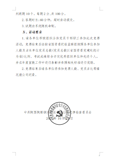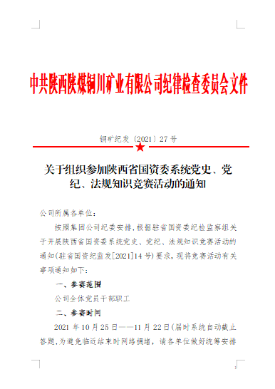關(guān)于組織參加陜西省國(guó)資委系統(tǒng)黨史、黨紀(jì)、法規(guī)知識(shí)競(jìng)賽活動(dòng)的通知