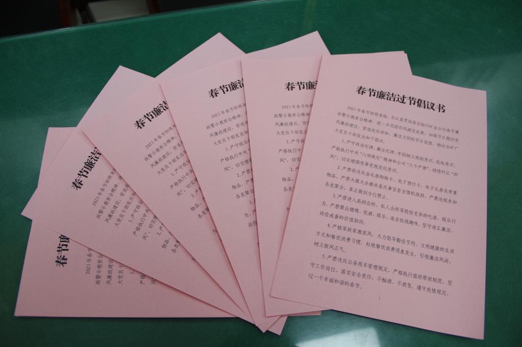 思想防線更牢固。該礦通過召開節(jié)前廉潔警示教育會,組織黨員干部認(rèn)真學(xué)習(xí)貫徹公司2023年春節(jié)廉政警示教育會議精神,集體學(xué)習(xí)了中央紀(jì)委國家監(jiān)委公開通報的十起違反中央八項(xiàng)規(guī)定精神典型問題和公司《關(guān)于 2023 年元旦、春節(jié)期間正風(fēng)肅紀(jì)廉潔過節(jié)工作的通知》,共同觀看了電視專題片《永遠(yuǎn)吹沖鋒號》。以案為鑒,時刻扭緊思想“總開關(guān)”,扎好行動上的“籬笆墻”,進(jìn)一步促進(jìn)黨員干部自覺抵制“四風(fēng)”,堅決筑牢廉潔自律防線,不踩底線、不越紅線,以優(yōu)良作風(fēng)展現(xiàn)新氣象,彰顯新作為。