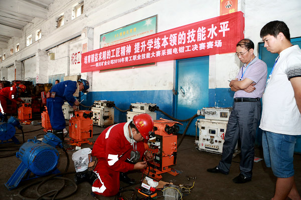 “培育精益求精的工匠精神、提升學(xué)練本領(lǐng)的技能水平”,在實操比賽現(xiàn)場,大賽主題橫幅醒目,二十二個大字,激勵著參賽選手。經(jīng)過兩天緊張激烈的角逐,在7月19日上午進(jìn)行的理論考試結(jié)束后,參賽選手們分別在玉華、下石節(jié)、陳家山、救護(hù)大隊實操比賽場地,進(jìn)行了采煤機司機、電機車司機、瓦斯檢查、采掘電鉗工、醫(yī)療急救專業(yè)的技能比拼。實操現(xiàn)場選手們沉著冷靜,毫不落后,紛紛展現(xiàn)出了個人嫻熟的技藝,“手指口述”準(zhǔn)確清晰、故障判斷準(zhǔn)確無誤、停車距離精準(zhǔn)穩(wěn)定、醫(yī)療急救快速有效。選手們不僅用實際行動詮釋了“工匠精神”,更以精益求精的態(tài)度,要求自己,每名參賽選手都以飽滿的熱情,嫻熟的技術(shù),連貫而有序的操作進(jìn)行了激烈的角逐。裁判員也通過選手們的各項操作,進(jìn)行準(zhǔn)確地打分,保證比賽的公平公正。