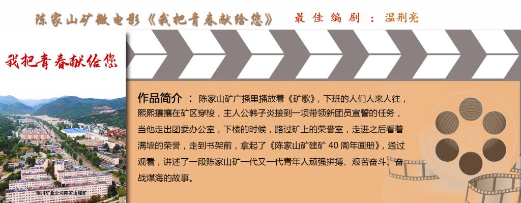 陳家山礦微電影《我把青春獻(xiàn)給您》以公司涌現(xiàn)的“全國(guó)煤炭工業(yè)勞動(dòng)模范”康紅牛、何萬明,“全國(guó)煤礦建功立業(yè)優(yōu)秀大學(xué)畢業(yè)生”韓奇為原型,講述了陳家山礦一代代青年頑強(qiáng)拼搏、艱苦奮斗、鏖戰(zhàn)煤海的故事,摘得“最佳編劇”獎(jiǎng)。