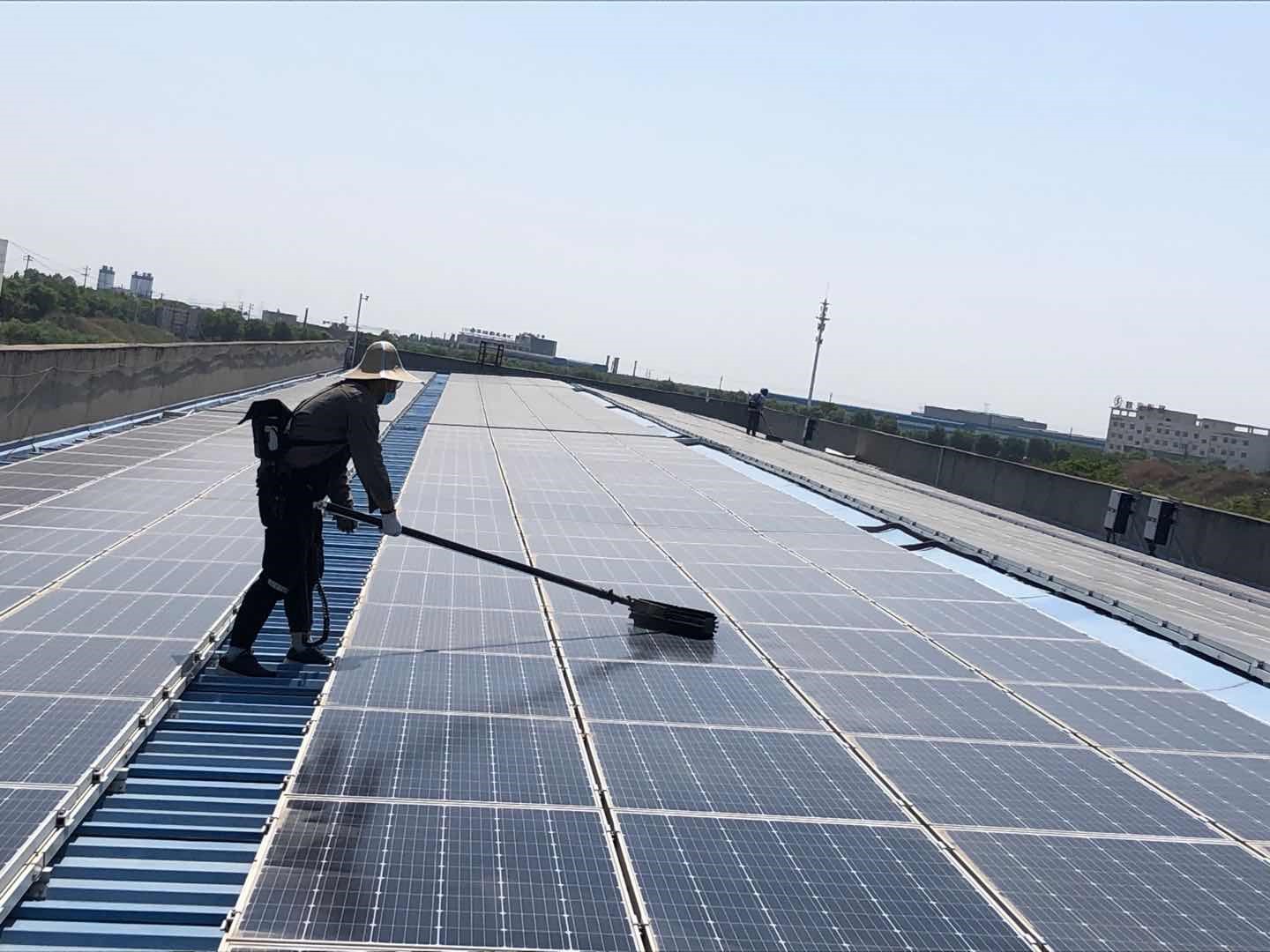 欣榮公司新區(qū)6MWp分布式光伏發(fā)電站,光伏板數(shù)量總計達20868塊,大都分布在屋頂。人工清掃難度大、工作量重。為安全、高效地完成光伏板清潔除塵任務(wù),公司根據(jù)現(xiàn)場實際情況,特制定清掃方案,并對團員青年清掃隊伍進行了風(fēng)險預(yù)控和安全技術(shù)交底工作,保證團員青年清掃隊伍的人身及設(shè)備安全。團員青年克服困難,認(rèn)真仔細并耐心清掃,在一次次揮汗下,歷時兩天共計清掃光伏板2000余塊,后續(xù)將加快清掃力度,保證完成光伏清掃工作。