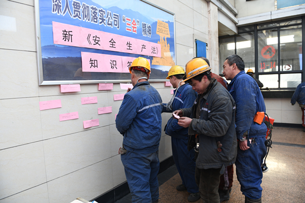 該礦團(tuán)委將新《安全生產(chǎn)法》宣貫工作與礦井實(shí)際相結(jié)合,采取有獎(jiǎng)競(jìng)答的方式,讓廣大干部職工在寓教于樂(lè)中知法、學(xué)法、懂法、守法,進(jìn)一步強(qiáng)化自身安全意識(shí),用法律來(lái)規(guī)范自己的安全行為,答對(duì)的職工領(lǐng)上毛巾、香皂等紀(jì)念品,并叮囑堅(jiān)守安全底線,上標(biāo)準(zhǔn)崗,干標(biāo)準(zhǔn)活,實(shí)現(xiàn)安全生產(chǎn)。同時(shí),該礦各基層單位充分利用班前會(huì)、周五安全學(xué)習(xí)等時(shí)間,開展專題課堂,層層分解學(xué)習(xí)新《安全生產(chǎn)法》,進(jìn)一步增強(qiáng)全員安全防范意識(shí),營(yíng)造“全員抓安全”的濃厚氛圍。