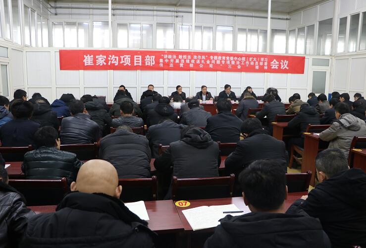 在傳達貫徹了公司“三會”精神和公司黨政領導在會上的重要講話精神后,該項目部從安全、效益、廉潔、作風等四個方面對新的一年各項工作提出了要求,要始終抓好“安全”工作,各部室要根據專業(yè)分工組織相關基層單位召開專題會議,總結2018年工作中的不足,完善相關制度考核辦法,切實抓好2019年安全生產工作;要瞄準“效益”目標,按照產量、進尺要求,細化分解工作任務,優(yōu)化勞動組織,切實抓好原煤生產和采掘工作;要抓好“廉潔”工作,認真開展好專項整治工作,繼續(xù)抓好各單位工資分配管理;持續(xù)轉變“作風”,要嚴格執(zhí)行項目部各項工作制度和各項紀律規(guī)定,落實好帶班跟班下井工作制度、值班規(guī)定和請銷假制度,轉變干部作風;積極加強與崔礦工作溝通和業(yè)務交流,改善工作方法,以良好的工作作風推動各項工作共贏發(fā)展。