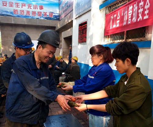 活動(dòng)現(xiàn)場(chǎng),該礦女工家屬協(xié)管安全員為上、下井的職工送上節(jié)日的祝福和親手包煮的愛心粽子、平安雞蛋等節(jié)日食品,并叮囑咐他們?yōu)榱俗约旱慕】岛图彝サ男腋#瑫r(shí)刻牢記安全,杜絕違章作業(yè),圓滿完成好各項(xiàng)任務(wù)。礦工們深受感動(dòng),堅(jiān)決表示一定聽從指揮,自覺遵章守紀(jì),決不違章蠻干,為礦井安全生產(chǎn)貢獻(xiàn)自己的一份力量。