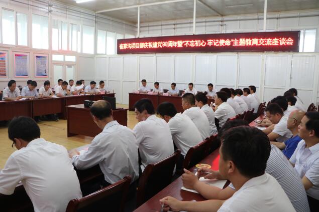 7月1日下午,崔家溝項目部召開慶祝建黨98周年暨“不忘初心 牢記使命”主題教育交流座談會,該項目部領(lǐng)導(dǎo)班子、各副總、各黨支部書記、副書記、副科級以上黨員干部及納新黨員共60余人參加。