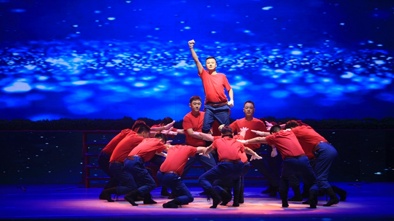 表彰大會結(jié)束后,分設(shè)“難忘歲月、魅力礦山、奮斗逐夢”三個(gè)篇章的文藝演出,在開場舞《旗幟》中拉開序幕。