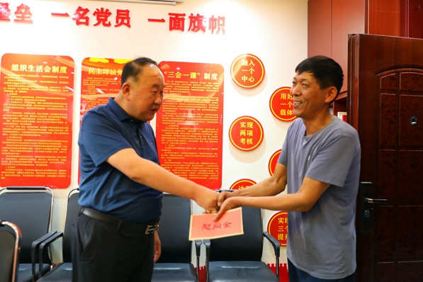 心系黨員送祝福,枝葉關(guān)情暖人心,該礦把困難黨員的冷暖始終放在心上?!捌?一”前夕,提前安排部署做好摸底,確定了14戶困難黨員,為他們送去節(jié)日的關(guān)懷和溫暖,進(jìn)一步增強黨員的榮譽感、歸屬感和使命感,激勵黨員發(fā)揮引領(lǐng)作用,拼搏奉獻(xiàn)、砥礪奮斗,為礦井高質(zhì)量發(fā)展再做新貢獻(xiàn)。