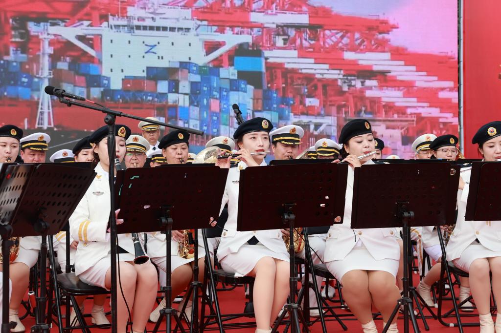 演出分上半場、下半場進(jìn)行。上半場演出在交響管樂《紅旗頌》的激昂旋律中拉開序幕,氣勢磅礴的樂章、震撼人心的旋律,將家國情懷、奮進(jìn)力量傳遞到現(xiàn)場的每一名職工的心中。